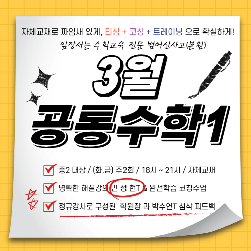 15.°í1/°øÅë¼öÇÐ 1 ¡á °³³äÁ¤¸®/³»½Å´ëºñ ¡Ú¹Î¼ºÇöT (È/±Ý¹Ý) 19:00~22:00 [ÀÚü±³Àç] [ÁÖ2ȸ 180ºÐ/¿ù8ȸ °íµî¼öÇÐ 455,0]